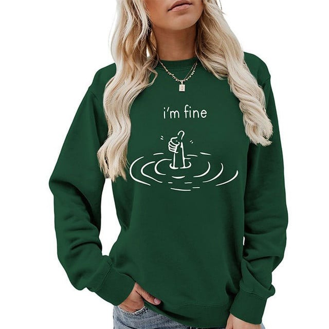 This sweatshirt isn’t just stylish; it’s also versatile. Ideal for casual outings, lounging at home, or as a quirky conversation starter. The ‘I’m Fine’ design adds a touch of humor to any occasion.