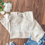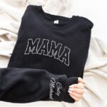 Personalized Mama Sweatshirt with Kids’ Names on Sleeve, Perfect Gift for Mother’s Day, Birthdays, or New Moms, Stylish & Minimalist Cool Mom Sweatshirt